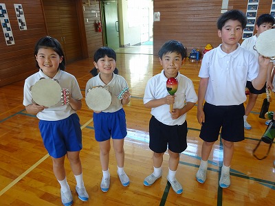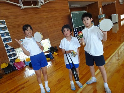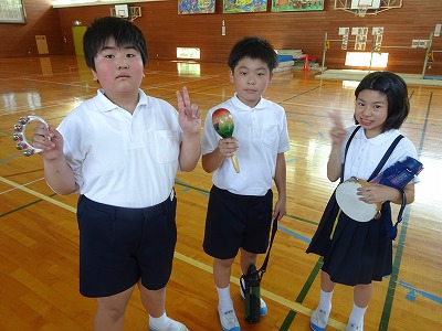 クラブの終わりには、各チームでゲットしたお宝(音楽室の楽器)を披露し合いました。