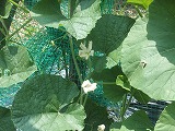 小さかったひょうたんも今や、柵の上までのび、白い花をさかせています。