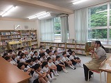 朝、図書館にて、中田先生に読み聞かせをしていただきました。