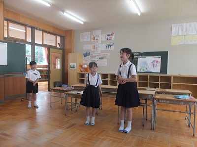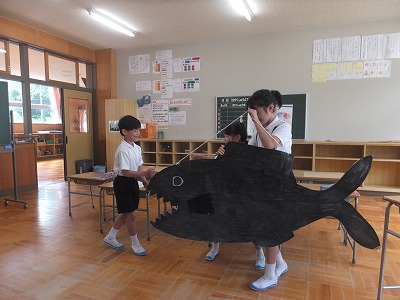国語で学んだことをもとに、休み時間に進んでスイミーの劇を発表する2年生です。