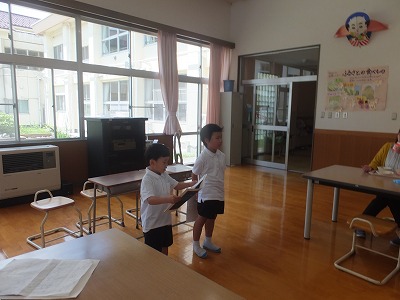 ランチタイムにも、学びを生かして、1年生がとりのくちばしクイズをしてくれました。