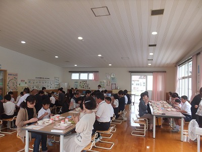 6月17日は学校公開でした。授業を参観していただき、昼にはランチルームで保護者の皆様、地域の皆様との給食試食会でした。