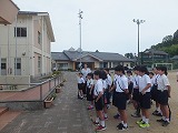 「行ってきます」全校みんなで元気に挨拶をしてシグナスに向かいました。