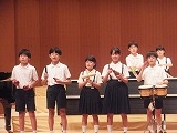 給食の後は、音楽会で演奏する曲を聞いていただきました。
