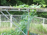 小さかったひょうたんも今や、柵の上までのび、白い花をさかせています。