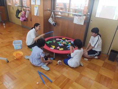 あすなろ学級、魚釣りゲームで数の学習です。
