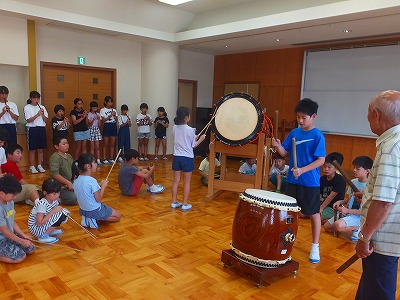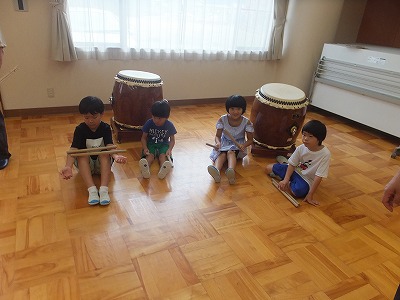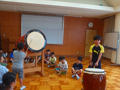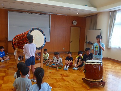 太鼓のご指導ありがとうございました。この後、プールに入りました。盛りだくさんのサマースクール一日目でした。