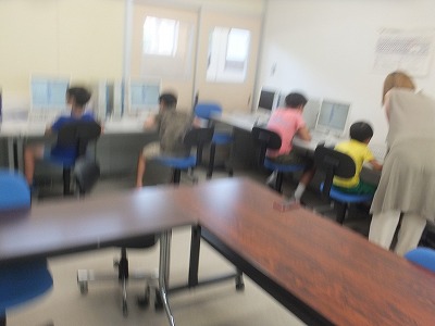 7/29 午後、公民館主催行事として、プログラミング教育が行われました。はじめに、低学年の児童が取り組みました。ねこちゃんをスタートからゴールまで移動させる、曲を鳴らすなどに取り組みました。