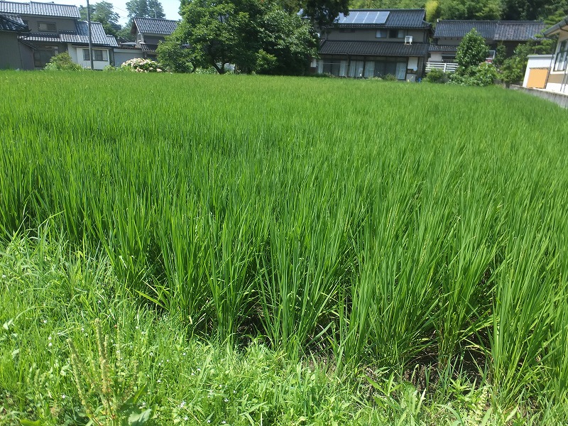田んぼの稲に穂が出はじめました。