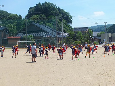 8/6 寺尾夏まつりにむけて、刈安ソーランの稽古を運動場で行いました。