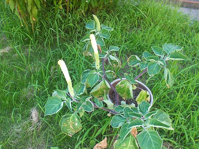 中庭に、こんな花がさきました。葉っぱが先に生え、葉っぱがなくなってから花が咲くそうです。元気に咲いています。