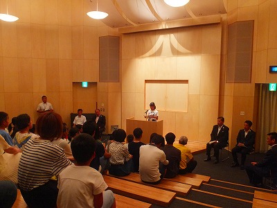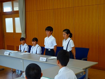 町長様、団長様のお話の後、児童を代表して、本校児童より4日間の活動報告がありました。凛々しい発表児童の姿も、聞き入る児童の姿も、旅の疲れを感じさせない素晴らしい姿でした。今後もこの体験を通して学んだことを生かし、さらにがんばってくれることと思います。お世話くださった皆様、引率の皆様、本当にありがとうございました。