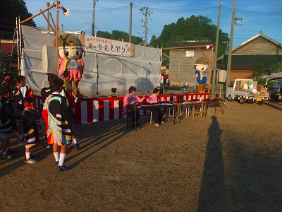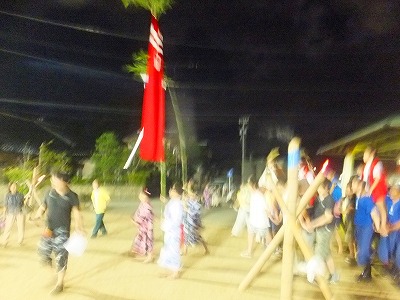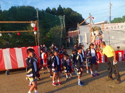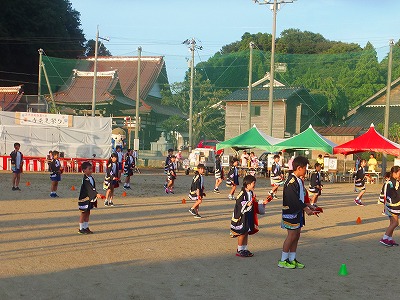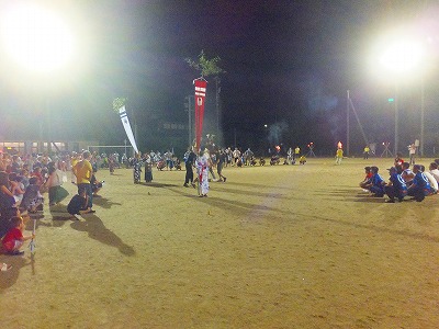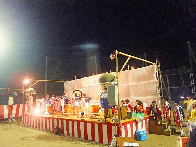 台風の影響か、夕方に一度雨がふりましたが、すっかりと晴れて、六時よりいよいよ寺尾夏祭りです。何日も前から、運動場に機材が運び込まれ、粛々と準備が進められてきました。