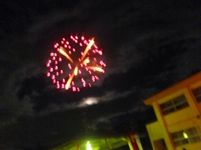 打ち上げ花火が刈安の空高く上がり、祭りを彩りました。