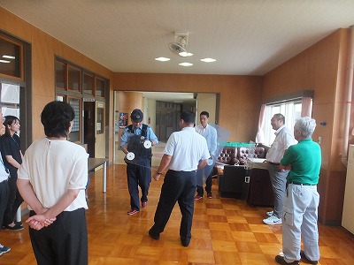 8/28 津幡警察署、倶利伽羅駐在所より警察の方をお招きして、不審者対応として「さすまた」の扱い方訓練を行いました。