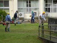 草刈り機持参で駆けつけてくださった方は、中庭や校舎の周りの草刈りをしてくださいました。