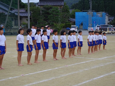 全校児童27名による「町歌体操」と「心をひとつに刈安スタンツ」です。