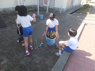 採れたまこもは、3,4年生が分け合って、持ち帰りました。