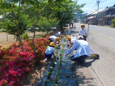 お昼のロングパワーアップタイムを活用して、みんなで花の苗を植えました。