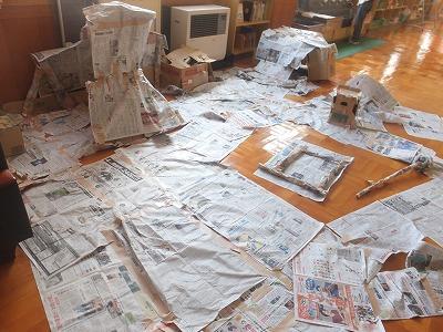 ややっこれは何? 1,2年生作の秘密基地ですって。シャンデリアも新聞紙でできていました。すごい!!