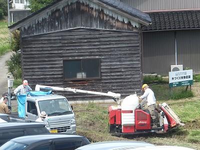 はじめにコンバインのことや、手で刈るときのポイントを組合長さんから