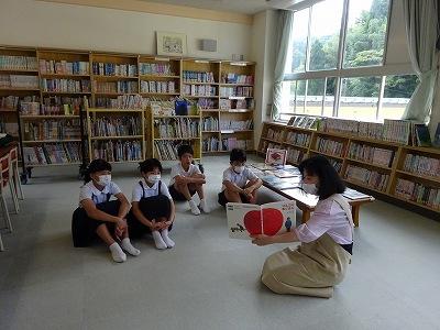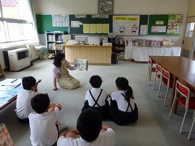 いつもと違って、なんと 1年生が5,6年生の教室に読み聞かせに出向きました。
