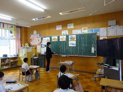 笠野小へ出向かせていただき、直接お会いしての合同授業となります。