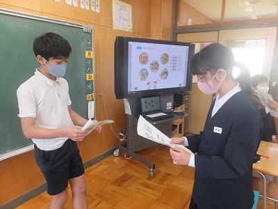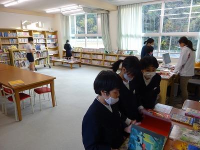 図書室で新しい本を読みながら、クイズの内容を相談していました。