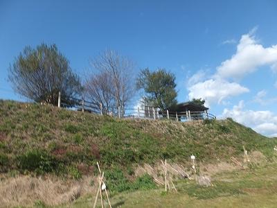 晴れ渡った龍ケ峰城址。遠くに立山、白山が見えました。