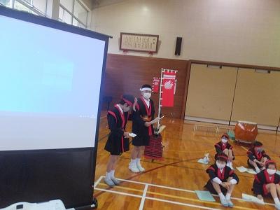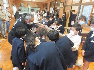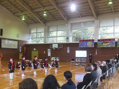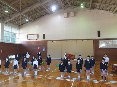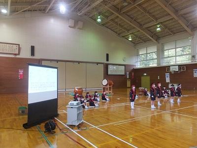 その後、子どもたちと保護者の皆様は、体育館にて、PTA子ども会お別れ会・みどりの少年団退団式をしました。