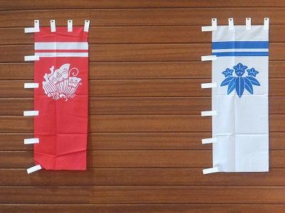 体育館にもいよいよ、源氏と平家の旗を飾り、気分を盛り上げてがんばっています。