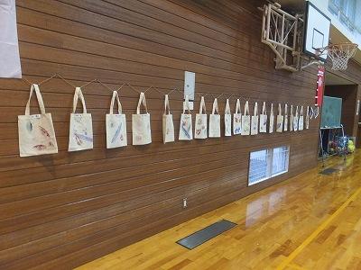 収穫感謝祭です。壁には、先日のバス遠足でつくったエコバックも飾りました。