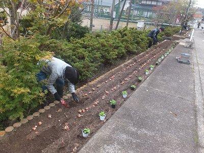 そのころ、外では、PTAの環境部のみなさんが、花壇の植え替え作業をほとんどしてくださいました。