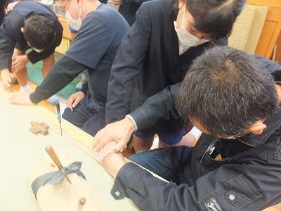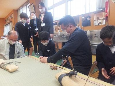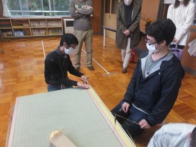 11/7  お弁当とおもちをいただいたあと、13:00から畳職人さんとの「ものづくり講座」を行いました。