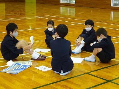 続いて児童集会。10/28の全校バス遠足のふりかえりをしました。