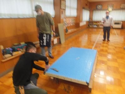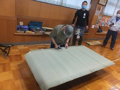 畳職人さんに 助けていただき、全職員が一針ずつ 縫わせていただきました。
