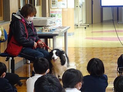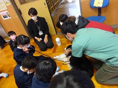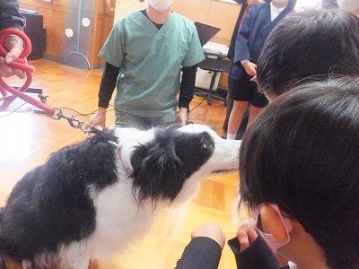 児童一人一人が、飼い主さんに挨拶をし、レディちゃんに挨拶をし、なでさせていただきました。