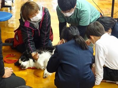 11/4   本日、犬とのふれあい教室を行いました。県中央保健所の獣医師さん、介助犬協会の方、そして介助犬の