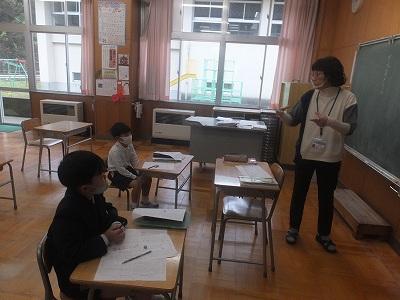 読み取りの発展学習、2年生。ベープサートの稽古をする2年生。