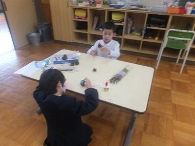 まず、どんぐりころがし、まとあて、どんぐりごまなど、遊び方の説明をしました。