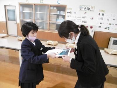 ランチタイム。図書プログラム委員さんより、クイズ大会の全問正解者に賞状。