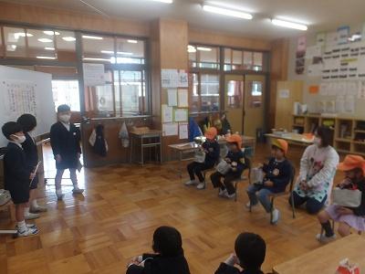 さて、本日は 1,2年生が保育園の年長さんをお招きしての