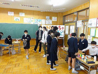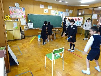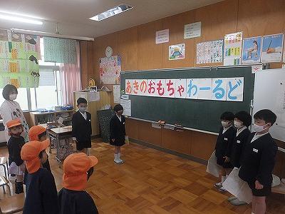 長休み、今日は5,6年生がお客さんになって1,2年生の【おもちゃわーるど】に