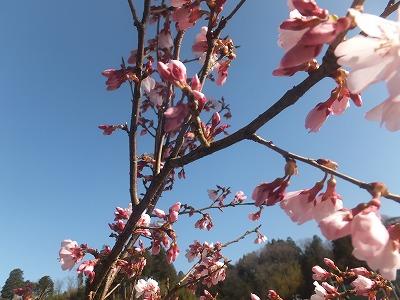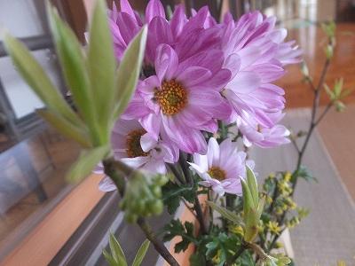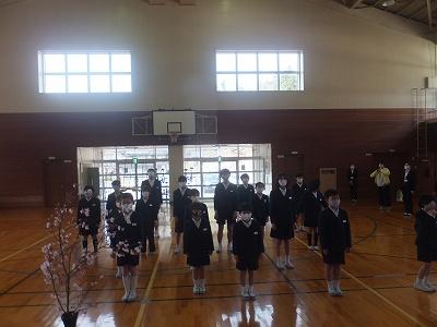3/24 修了式の朝です。校務員さんが、ご自宅より桜の枝を持ってきてくださいました。
