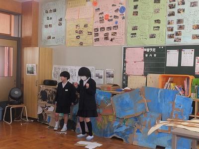 昼休み、「スイミー」の劇発表。2人で何役もがんばりました。