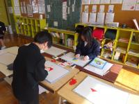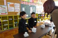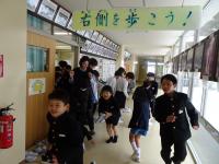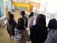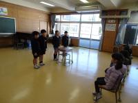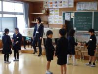 4月に入学する新入生を招待して「新1年生をむかえる会」がありました。1年生が新入生と手をつないで、学校たんけんをしました。途中に2年生から、「絵本の読み聞かせ」や「あやとり発表」がありました。1年生からは、国語で学習した「ものの名まえ」の学習をいかしていっしょに「お店やさんごっこ」をしたり、なわとびの「技クイズ」がありました。4月からいっしょに学習することが待ち遠しいですね。