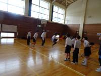 低中高学年にわかれて3分間に何回跳べるかを挑戦しました。記録を更新した学年もありました。低学年は101回、中学年は194回、高学年は225回。リズムよく跳んでいました。