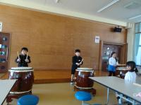 でんでこ太鼓を練習しました