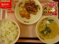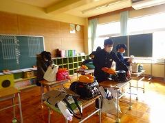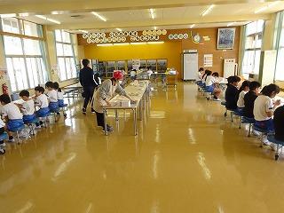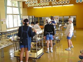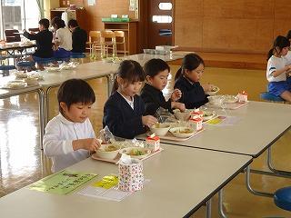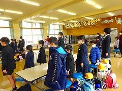 ↑今年度最後の給食です。ランチルームでは、3年生以上が背中合わせで、1.2年生は各教室で食べています。食事中による感染拡大を防止するためです。