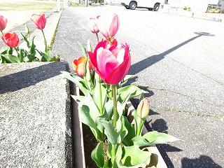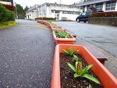 ↑ 笠野公民館さんが、卒業式に合わせて、チューリップとヒアシンスのプランターを並べてくださいました。秋に植えた球根が冬の寒さに耐え、しっかりと芽を出しつぼみが膨らんできました。花が咲くのが楽しみです。笠野子を思う地域のお心に感謝です。ありがとうございます。